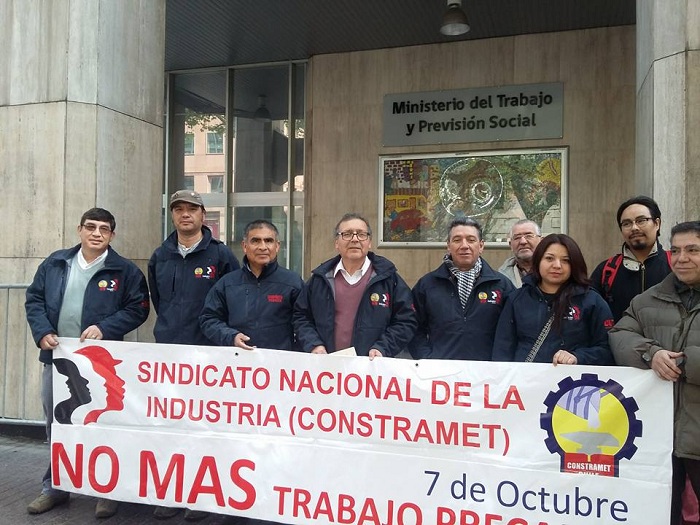Esta mañana El Sindicato Nacional “Industrial Chile CONSTRAMET” se dirige al Ministerio del Trabajo para manifestarse en contra del trabajo precario en el marco del día mundial por el trabajo decente, el que según expresaron los dirigentes es el que “provoca grandes diferencias y discriminaciones entre trabajadores que realizan …