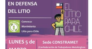 Para este lunes 5 de marzo, a las 18.30 horas, se convocó la Asamblea en Defensa del Litio en la sede de la Confederación de Trabajadores Metalúrgicos, ubicada en avenida Santa Rosa 101, esquina Santa Rosa. La convocatoria se realiza en medio de las señales enviadas por los representantes del …